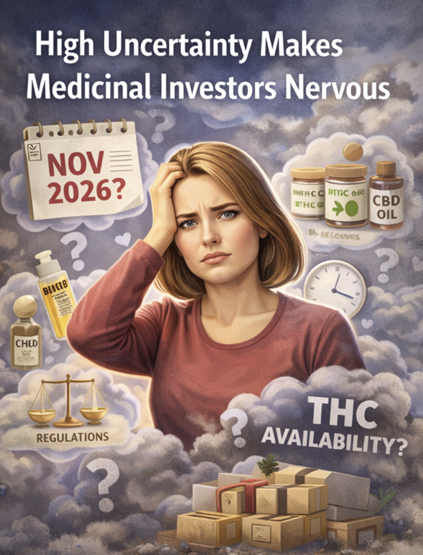 Add the separate uncertainty around THC availability and federal rescheduling timelines. Those may move, but investors cannot plan a five-year outcome around “if and when.” That dynamic does not make medicinal products un-investable—but it does change the risk premium and narrows which strategies have a clean path.
